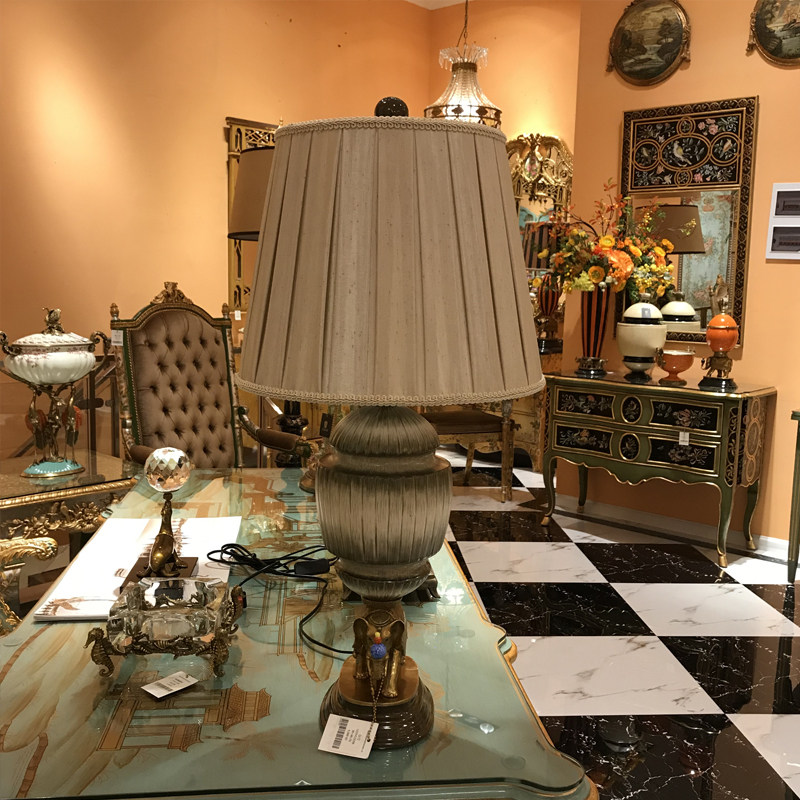 茱莉安美式欧式艺术大气米色大象装饰台灯铜客厅卧室桌面灯座精致