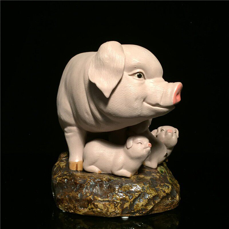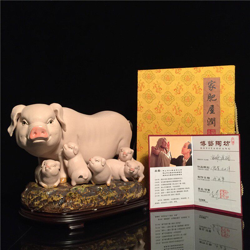 石湾公仔陶瓷猪年生肖摆件家居客厅玄关电视柜装饰品拜年商务礼品