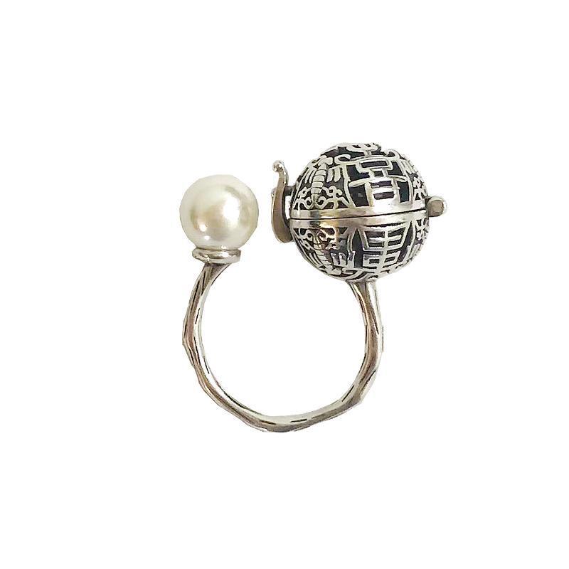 香囊球珍珠戒指环镂空随身佩戴扩香丸持久淡香可打开口调节复古风