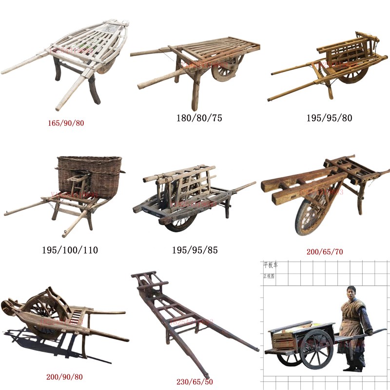 怀旧民俗老物件老式手推车老木车独轮车农村旧物平板车复古老农具