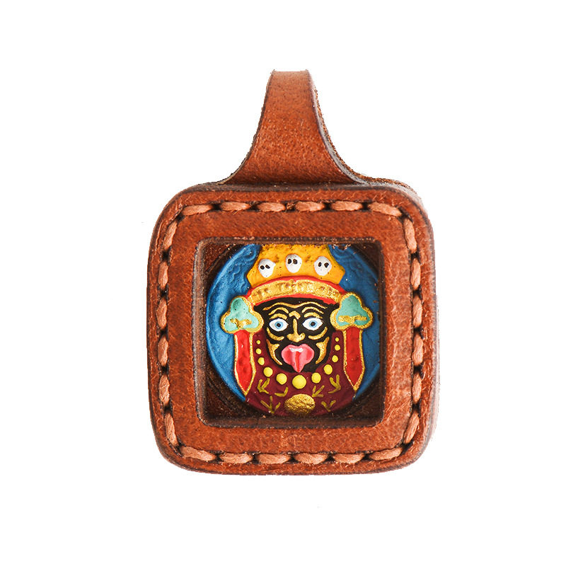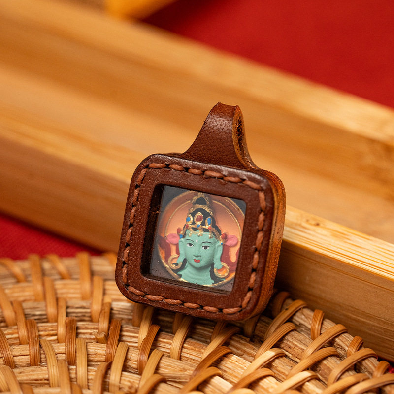 手绘唐卡扎基拉母DIY吊坠配件绿度母黄财文殊手工皮壳擦擦唐卡