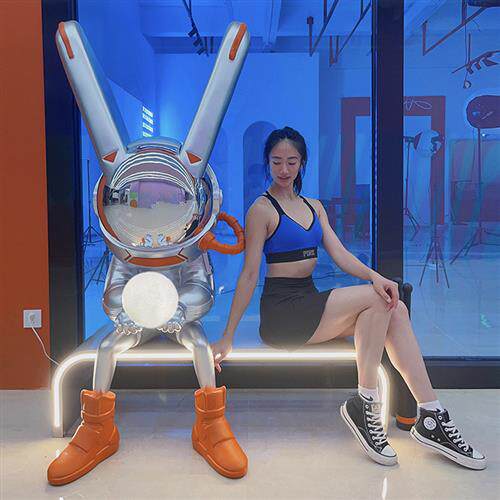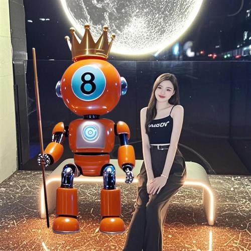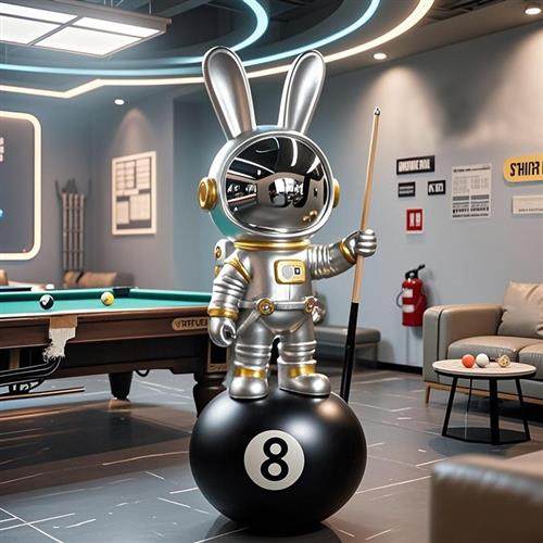 黑八科技兔台球公仔玻璃纤维雕塑门店俱乐部酒吧会所电竞引流大摆
