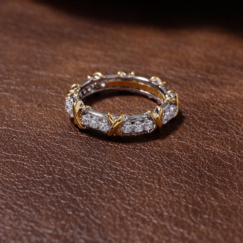 新款窄版16石戒指24石满钻排钻B对戒男女情侣交叉X系列双色银镀金