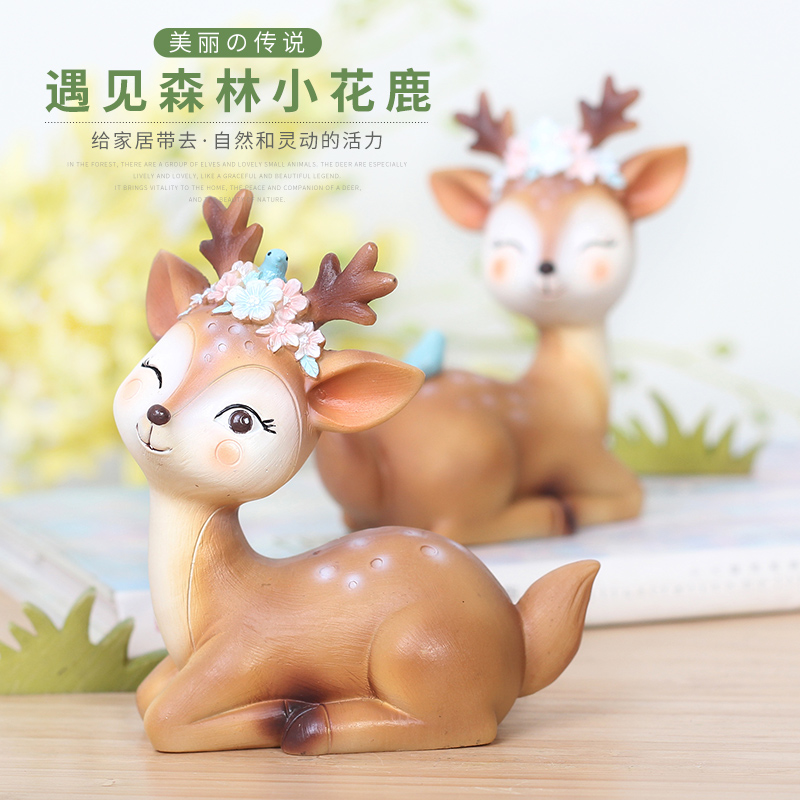 可爱梅花鹿小摆件客厅展示架办公室桌面装饰摆设送儿童女友礼物