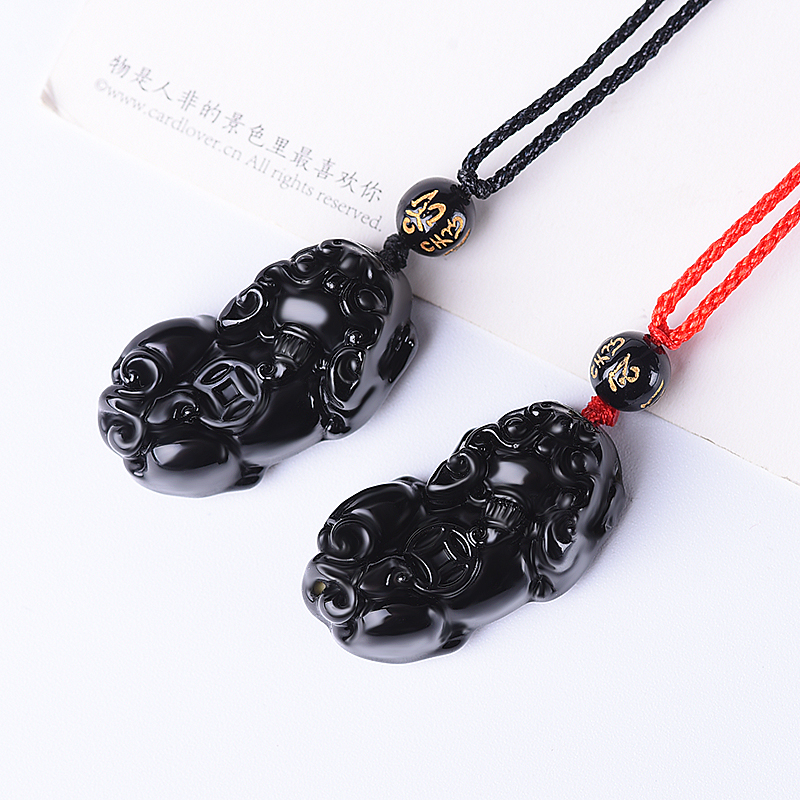 黑曜石一钱貔貅吊坠男士情侣一对貔恘项链情侣一对皮丘女款挂坠