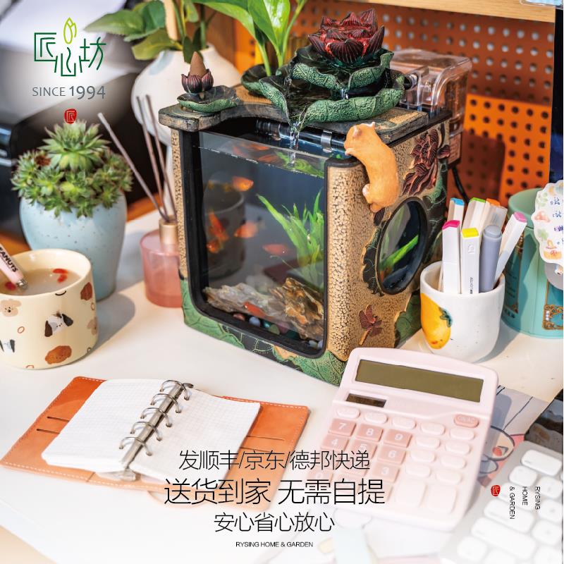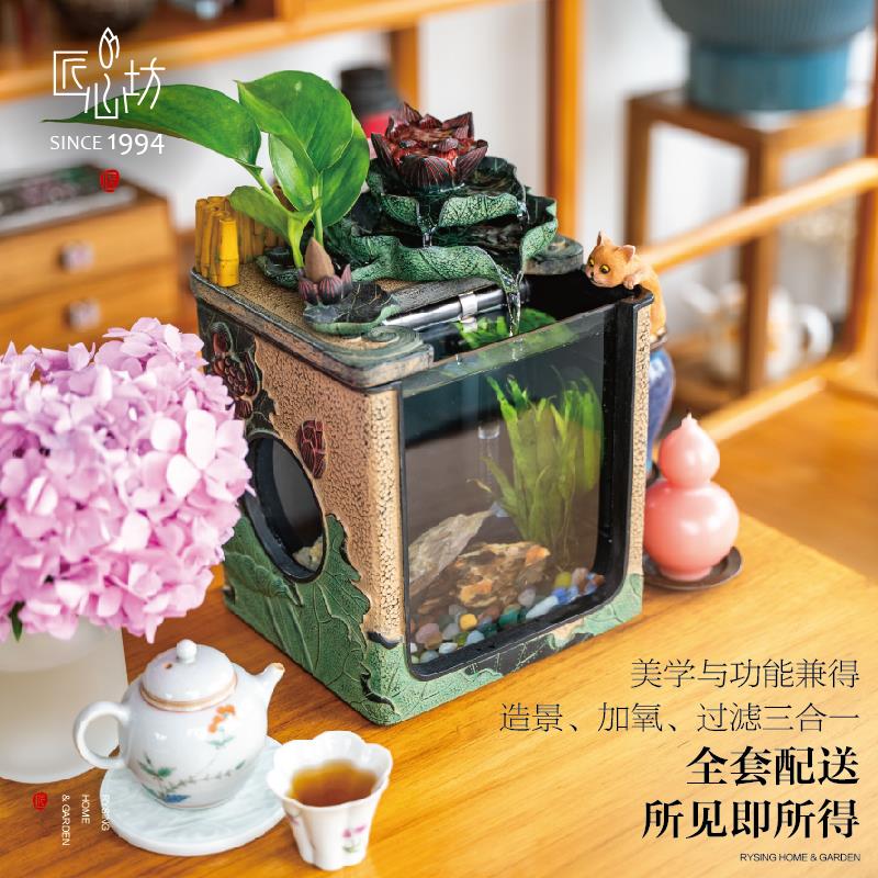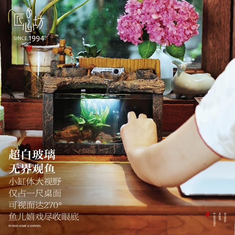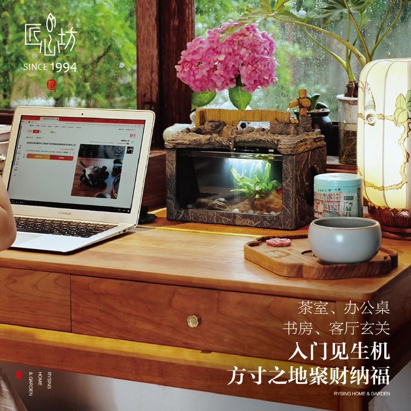 匠心坊客厅造景流水摆件循环水办公桌面微景观鱼缸办公室茶台鱼缸