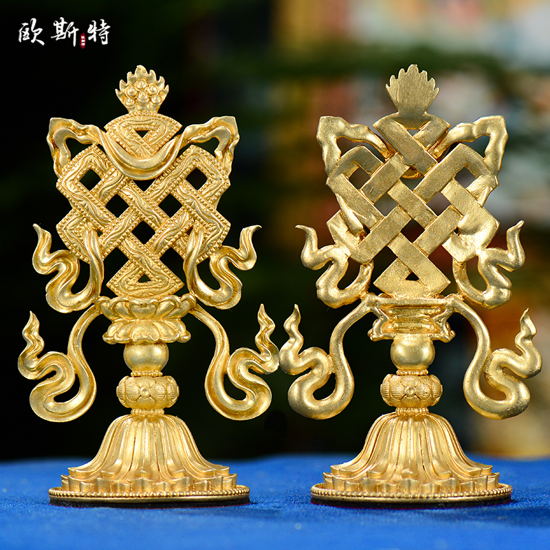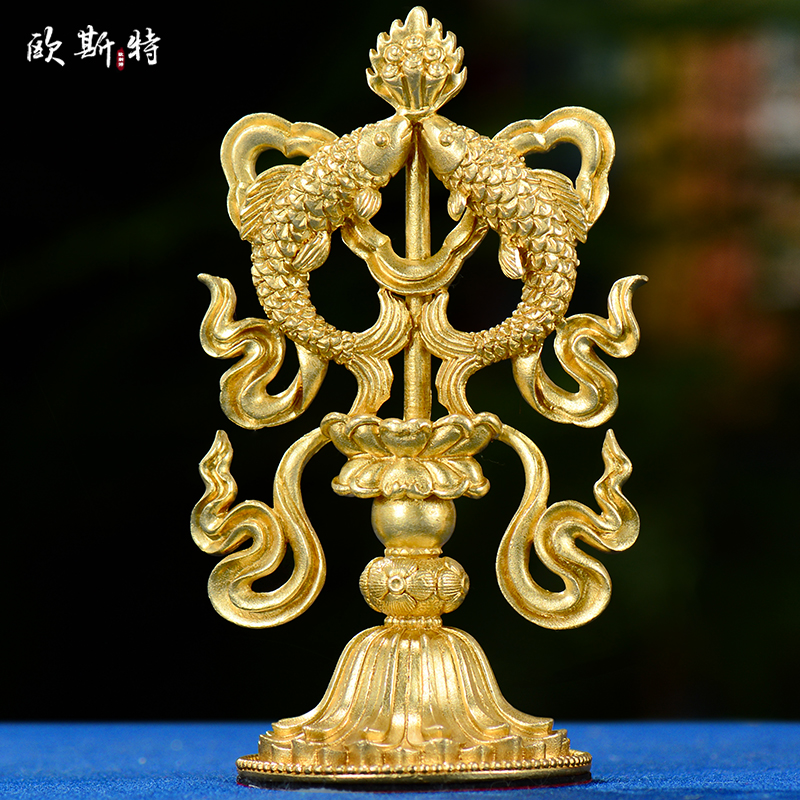 欧斯特全鎏金八吉祥摆件铜鎏金八吉祥总集 藏式吉祥八宝用品套装