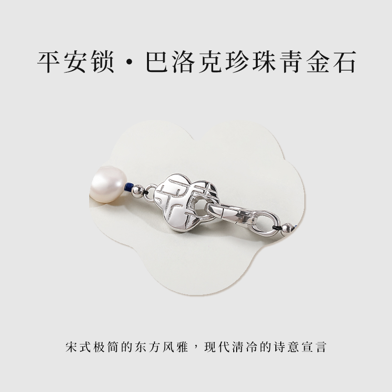 天然巴洛克珍珠项链女款纯银平安锁吊坠轻奢锁骨链高级感串珠颈链