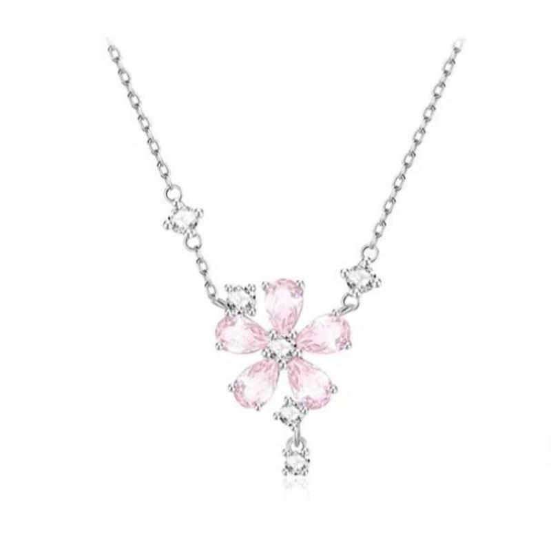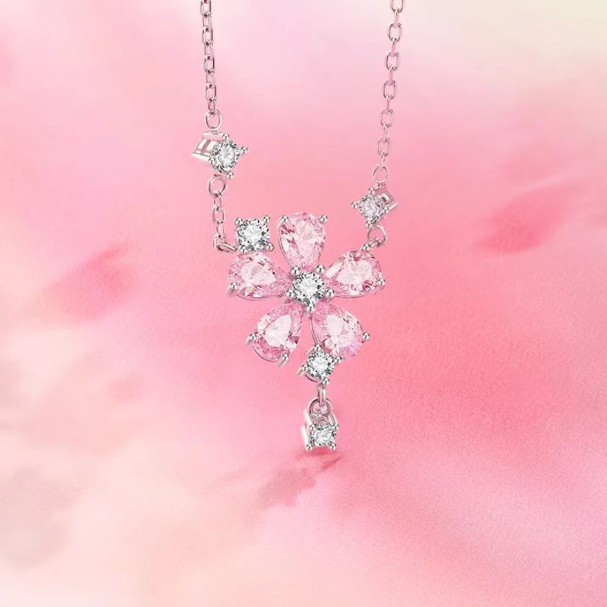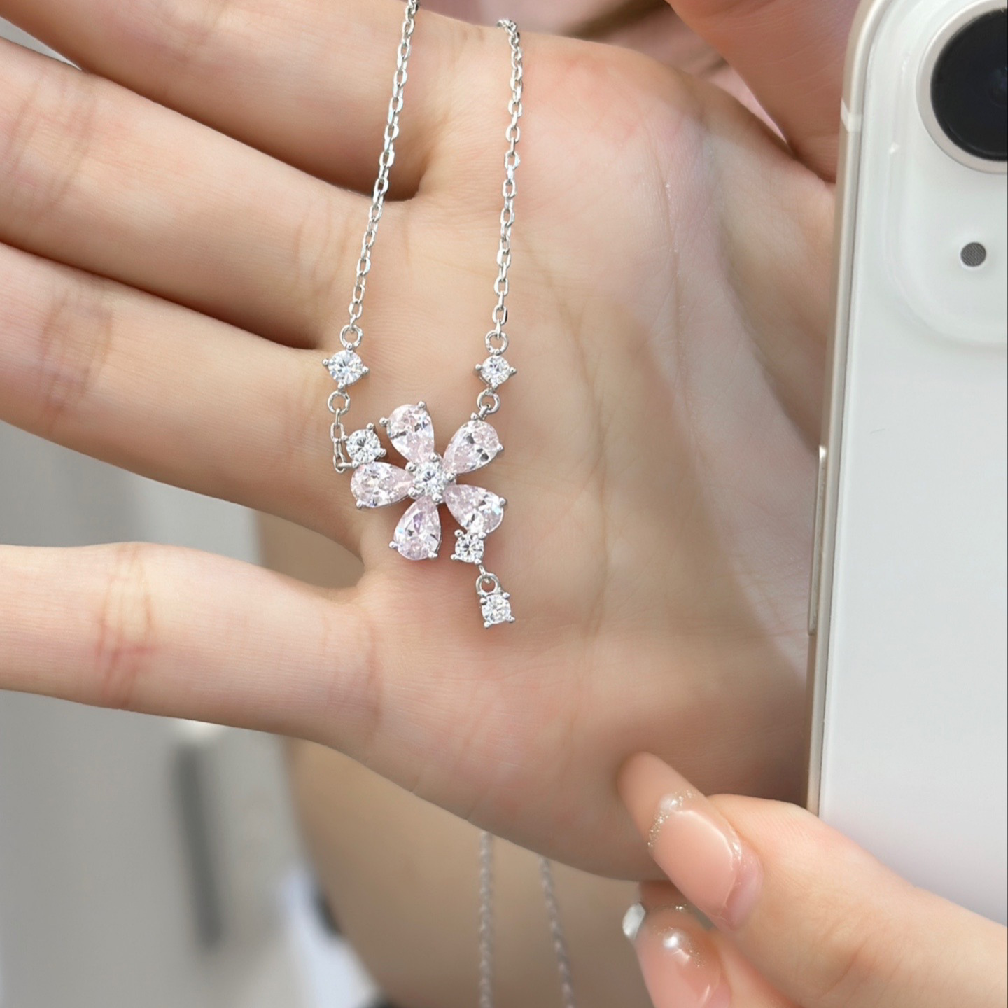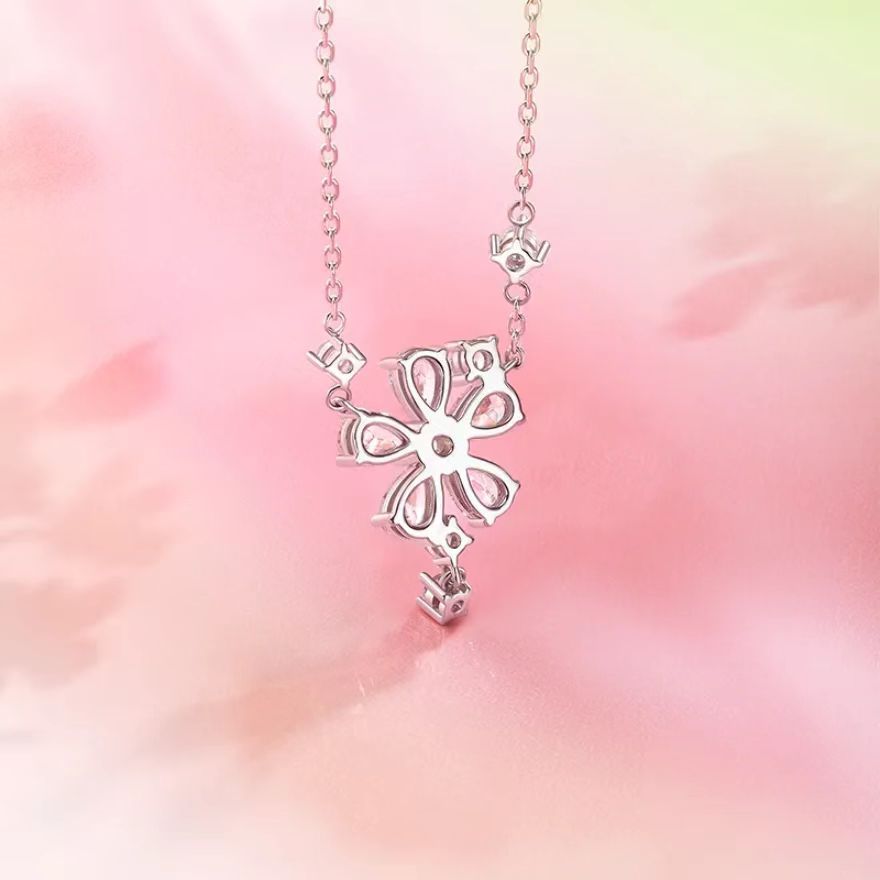 范琪带钢印【桃花系列】桃花朵朵轻奢小众时尚百搭粉色花朵锁骨链