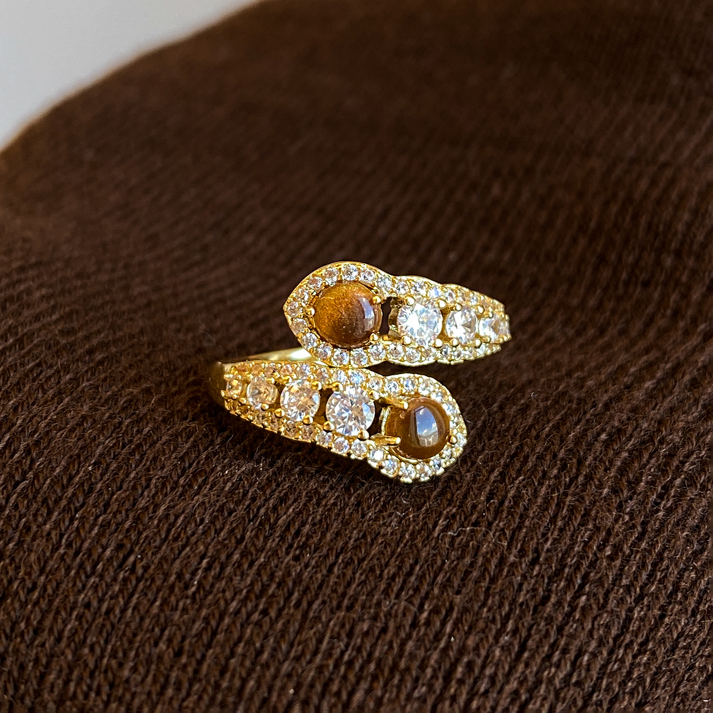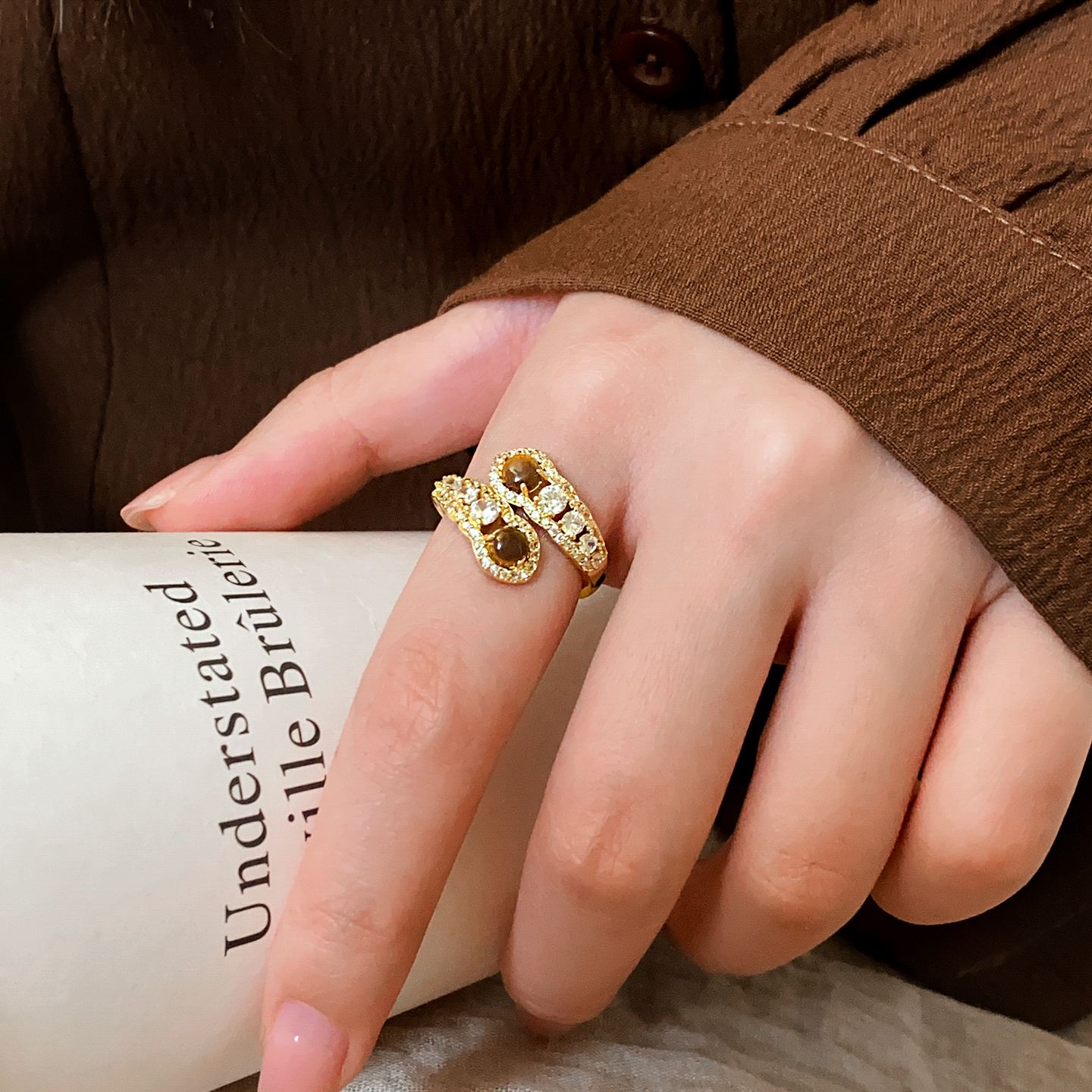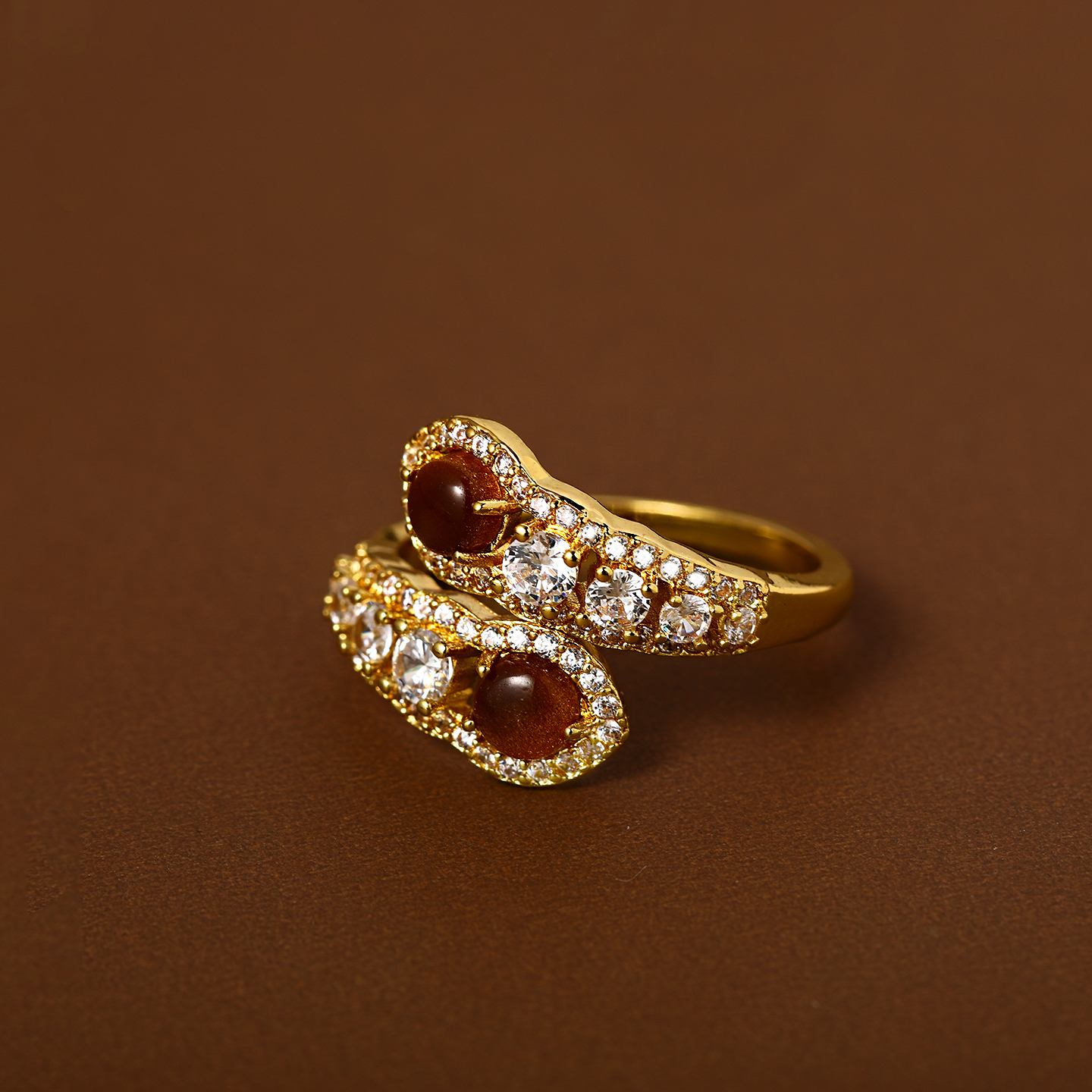美拉德虎眼石蛇形戒指女小众设计开口戒2025新款高级感食指戒指环