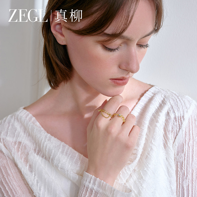 ZEGL真柳设计师天然黄水晶戒指女小众设计轻奢叠戴秋冬食指戒指环