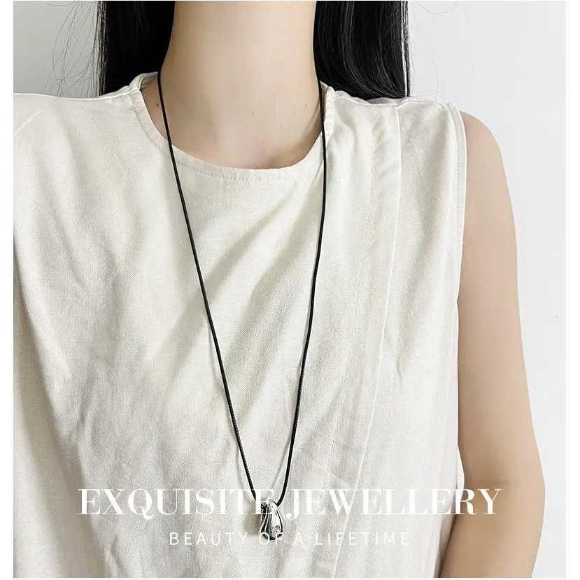 极简冷淡风水滴长款项链女抽拉式毛衣链高级感轻奢小众锁骨链配饰