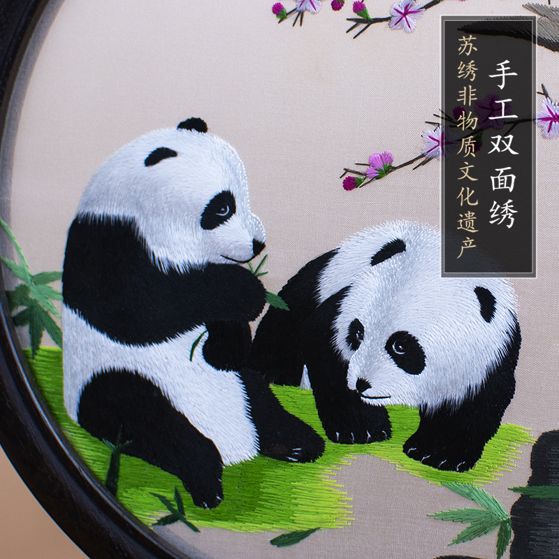 苏绣摆件成品台屏纯手工双面刺绣大熊猫桌面屏风中国风送老外礼品