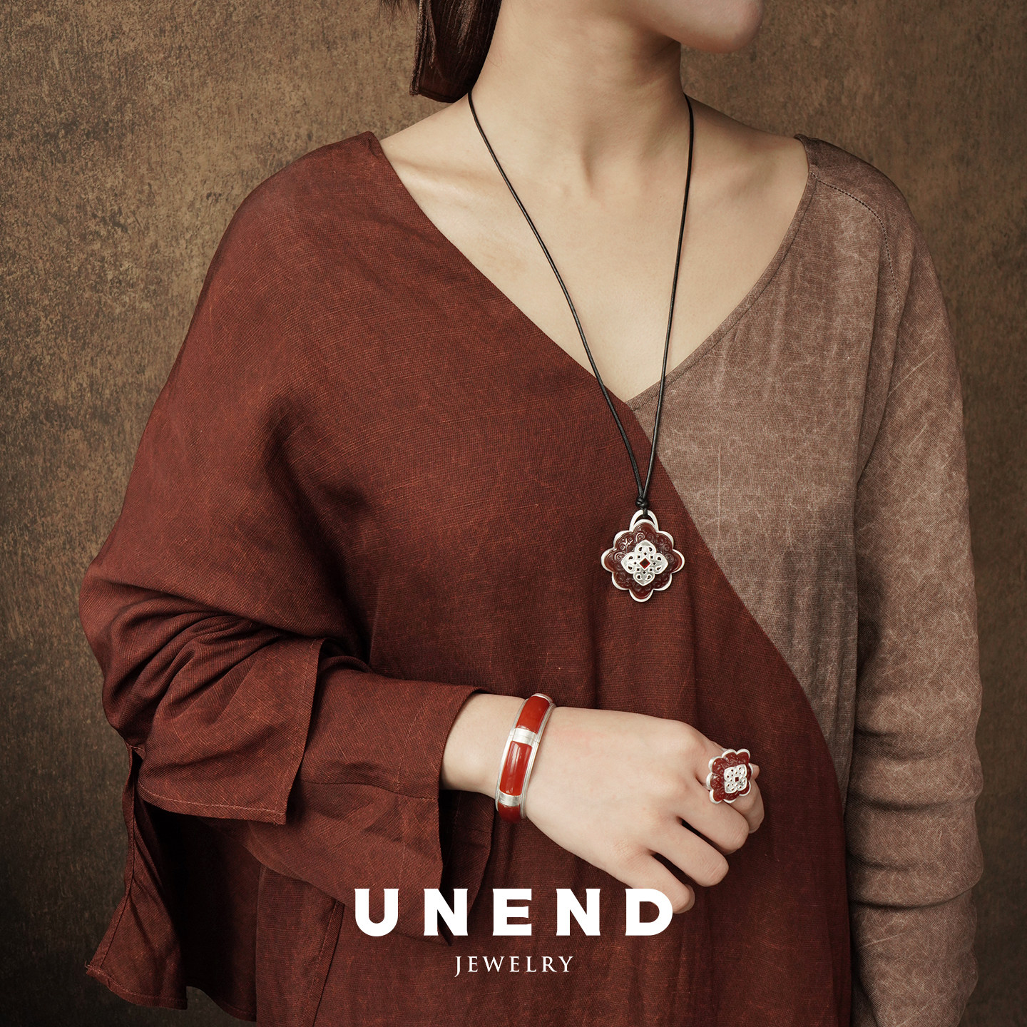 UNEND止续 时之花皮绳项链 纯银原创设计红玛瑙礼物默叙