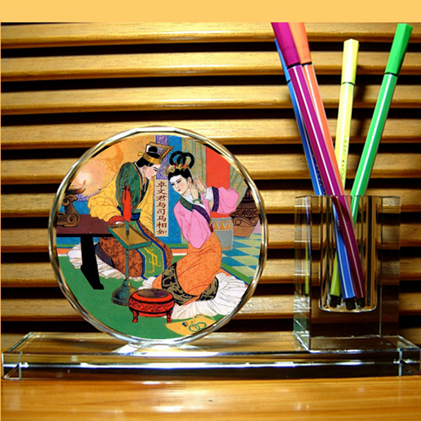 卓文君纪念品司马相如礼品摆设才子佳人才女人偶模型水晶笔筒摆件