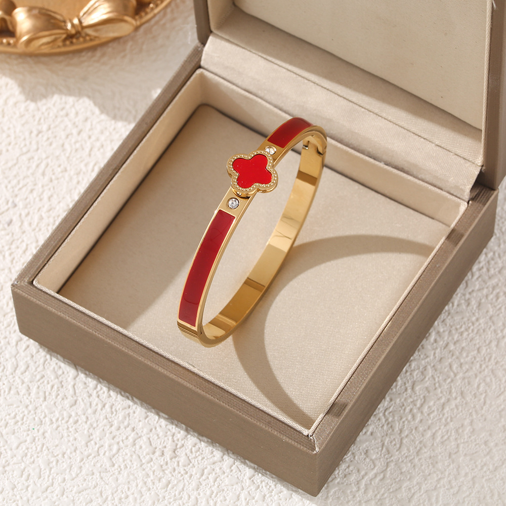 新款钛钢四叶草手镯油贝母时尚简约款百搭小众设计女网红同款饰品