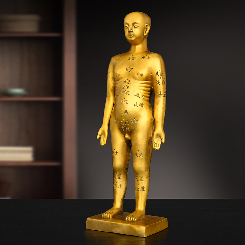 黄铜针灸铜人摆件艾灸人体经络模型中医药房装饰全身穴位人体图