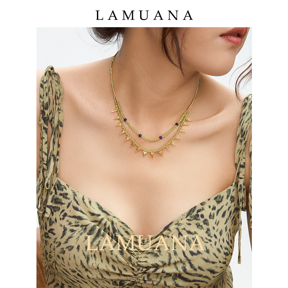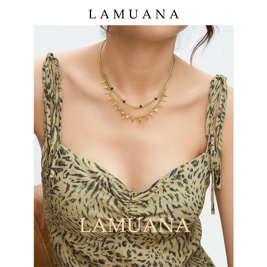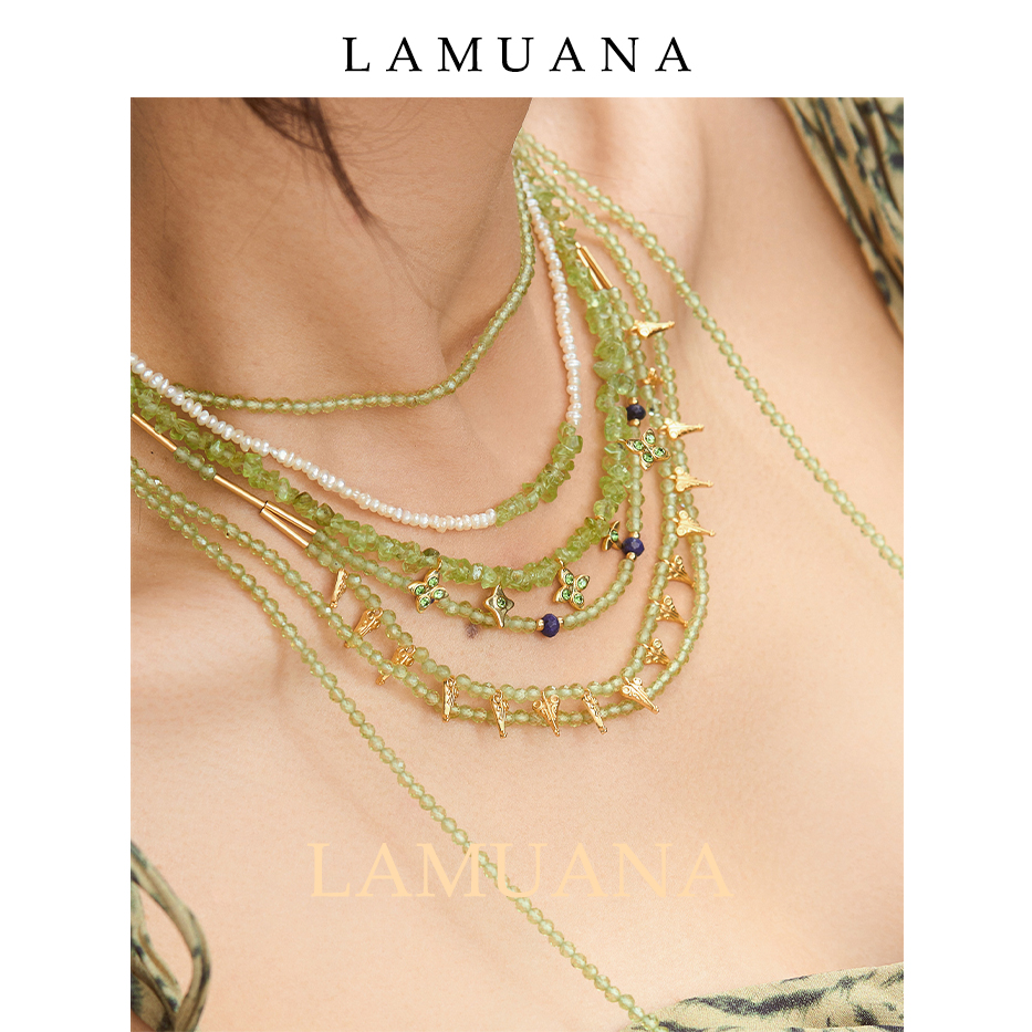 LAMUANA埃及橄榄石多层项链小众设计感颈链夏日串珠项链女68004