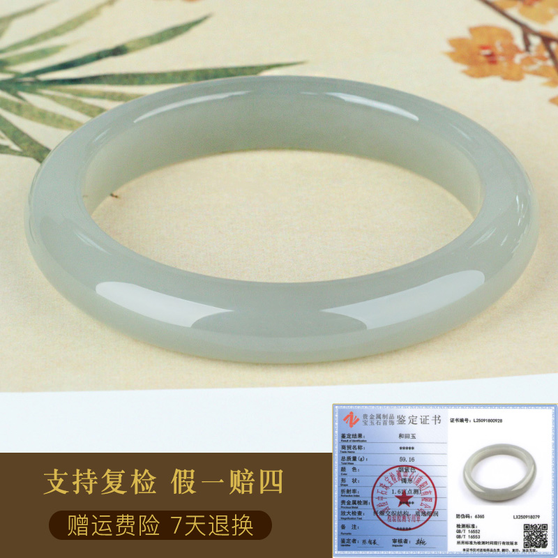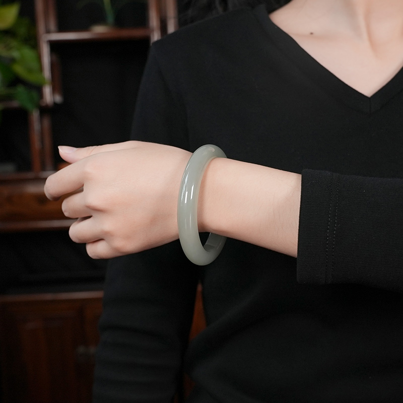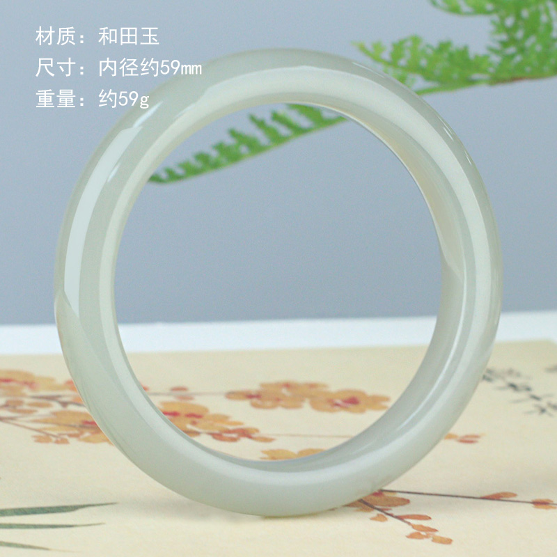 玉友和田玉手镯女款玉镯子淡烟紫奶奶灰圆满富贵玉镯子内径约59mm