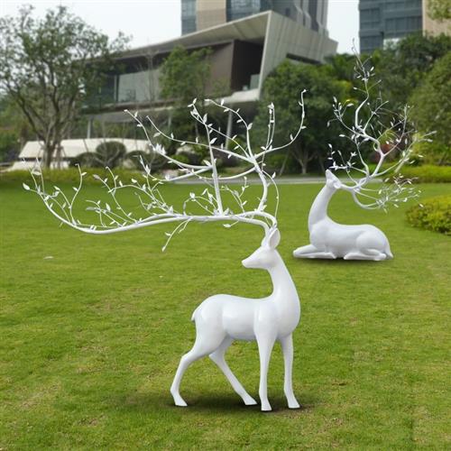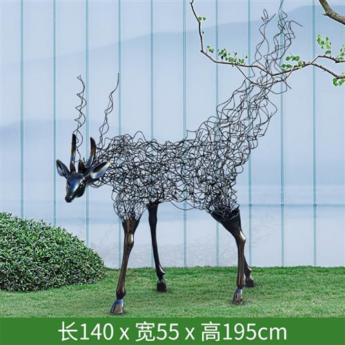 不锈钢镂空梅花鹿雕塑酒店大堂艺术售楼部装饰品园林景观麋鹿摆件