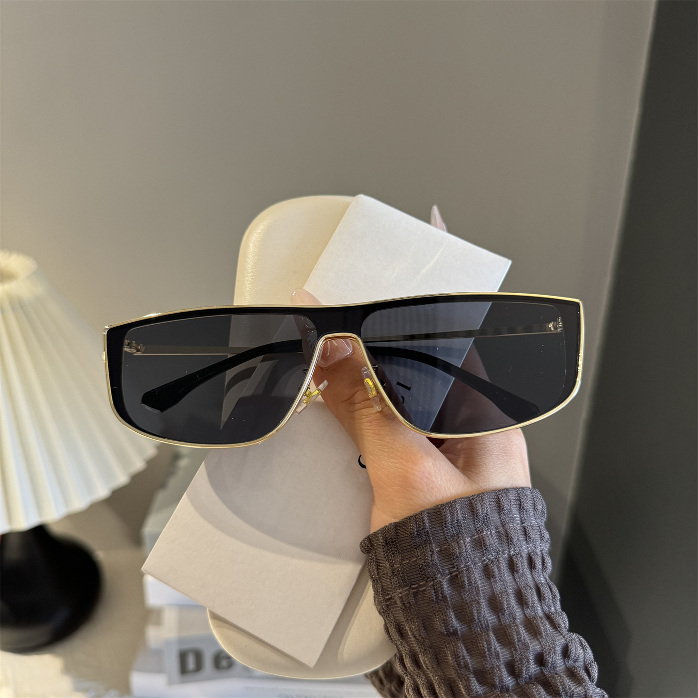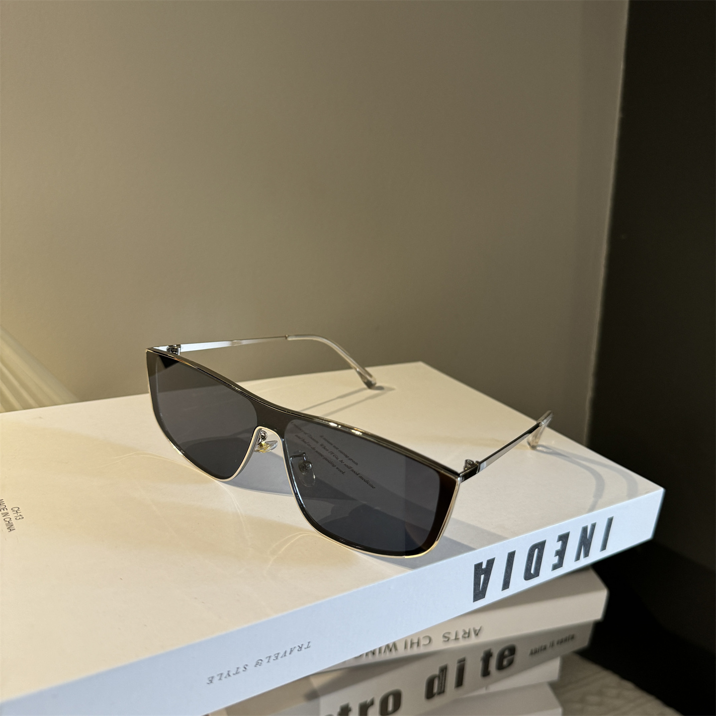 复古金属银框水银色未来高级感太阳眼镜连一体式老钱风墨镜女显瘦