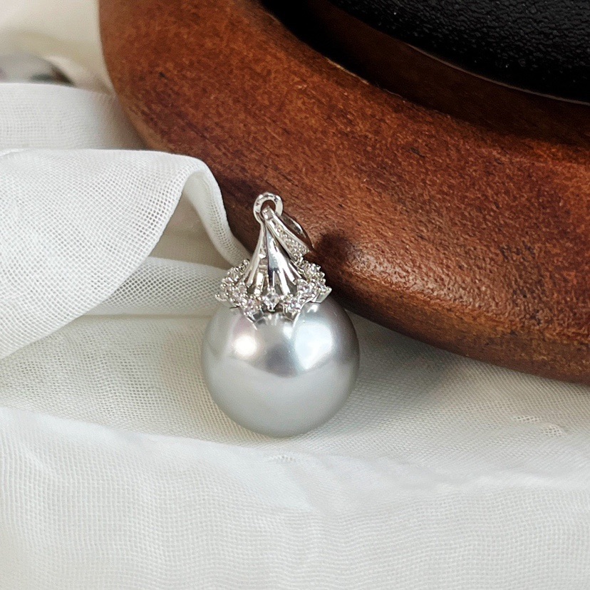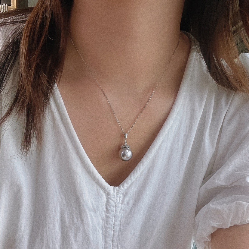 冷光澳白色铂金灰色14mm施家珍珠吊坠配送链子简约大气百搭送妈妈