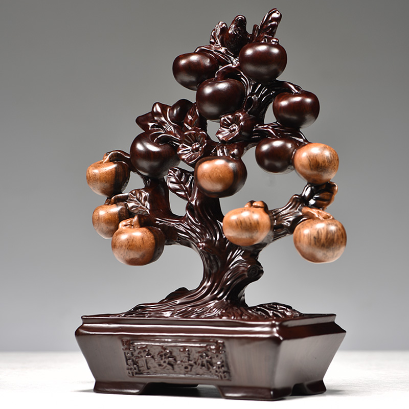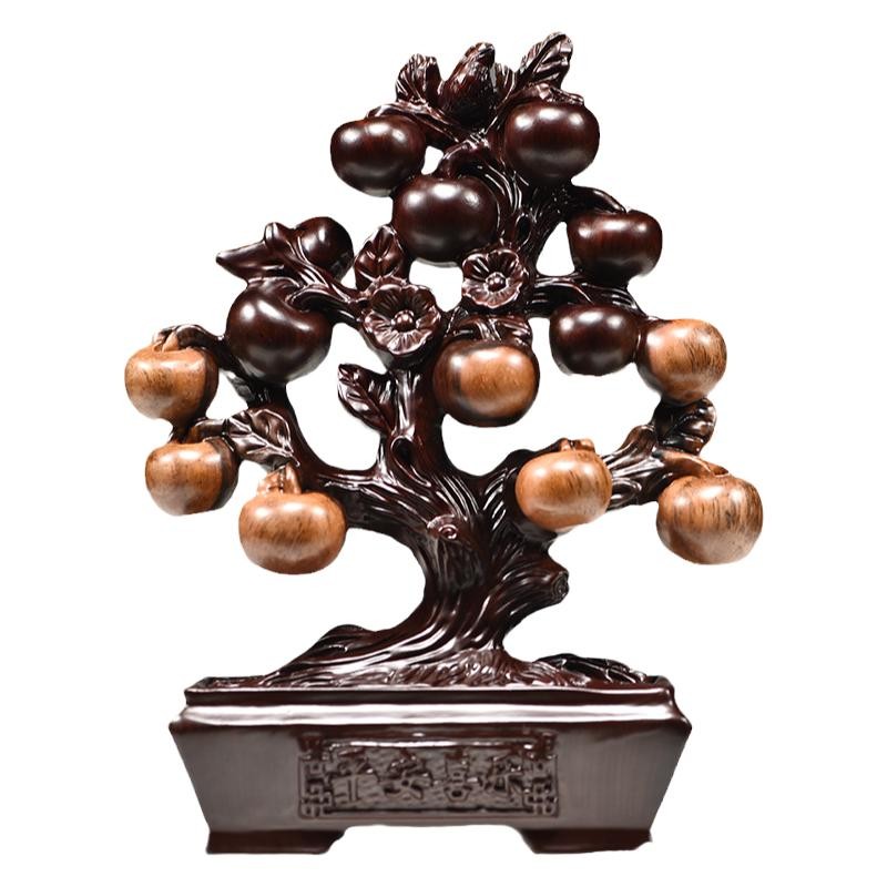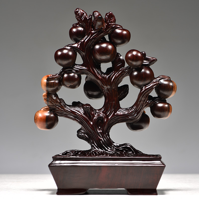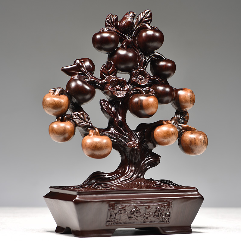 黑檀实木雕刻平安喜乐摆件苹果树喜鹊家居新中式客厅红木质工艺品