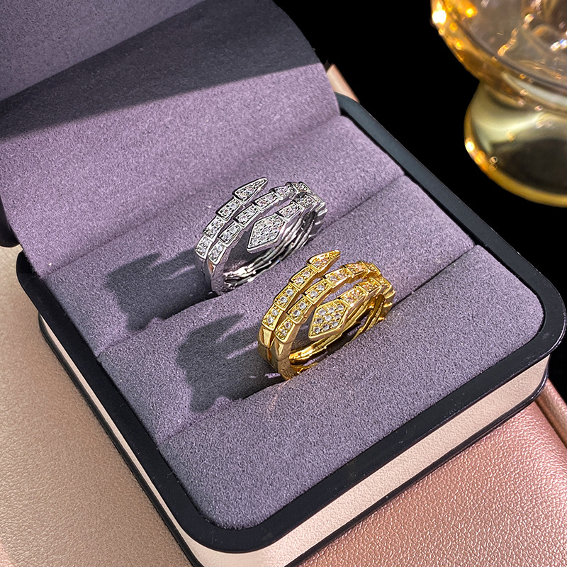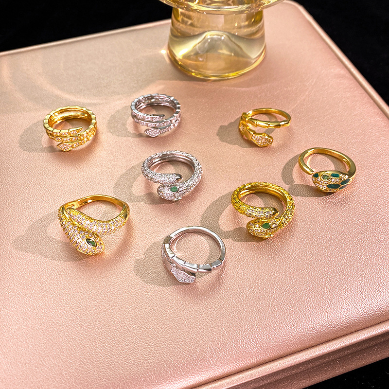 欧美流行爆款蛇形戒指铜镶嵌锆石时尚百搭指环满钻轻奢感饰品