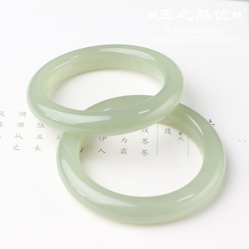 玉说和田玉青白玉手镯女款玉镯子冰种晴水泥鳅背少女款玉石手饰