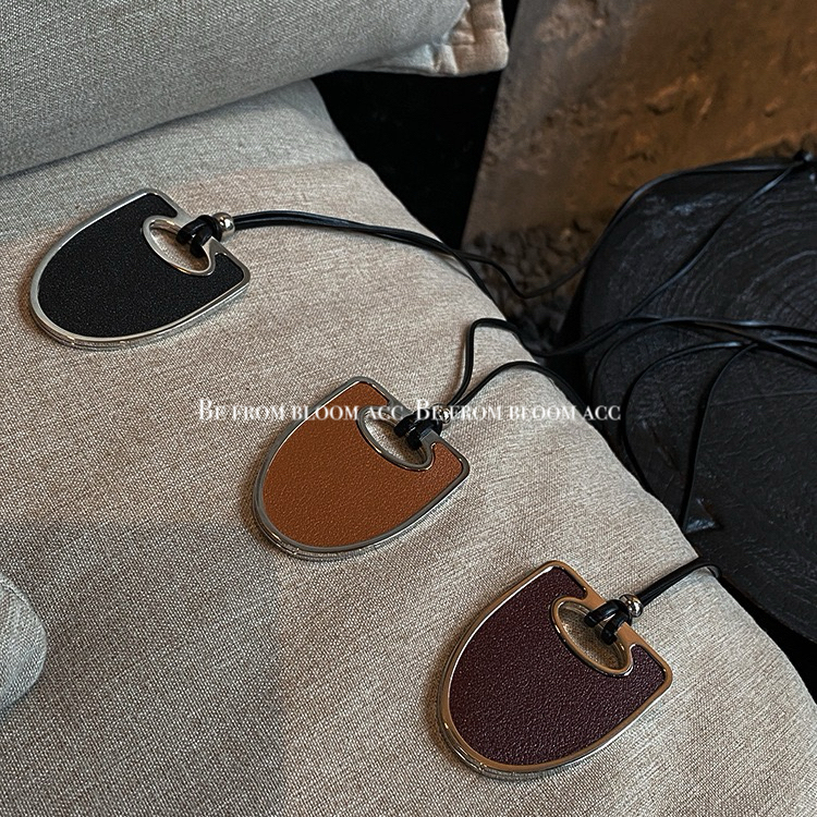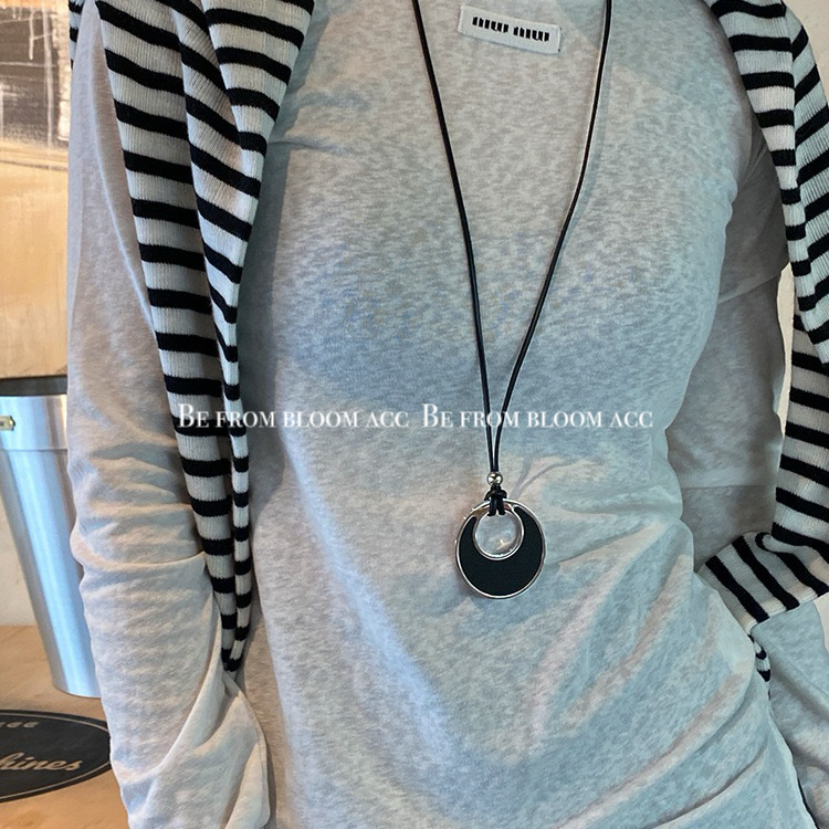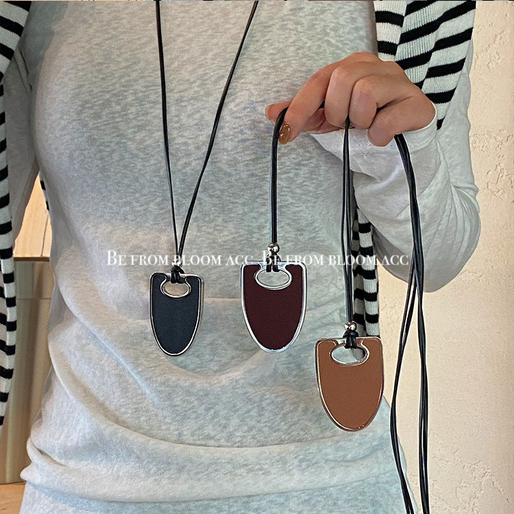 新款钛钢小众设计感皮革网红同款长款项链毛衣链几何百搭黑绳项链