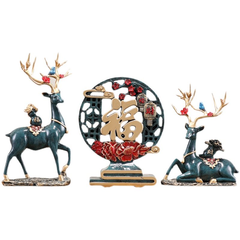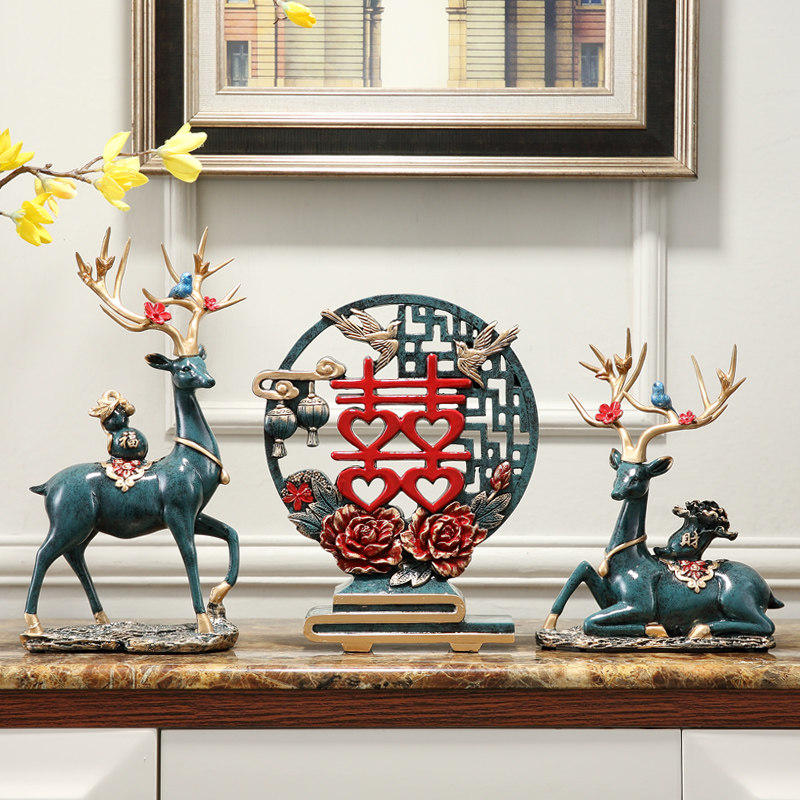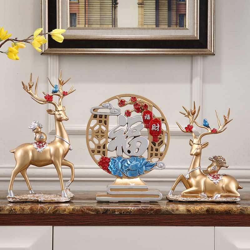 入户玄关装饰品招财鹿套装办公室客厅电视柜酒柜摆件结婚乔迁礼品
