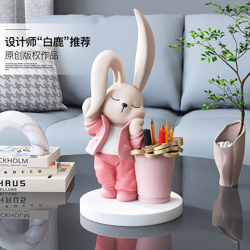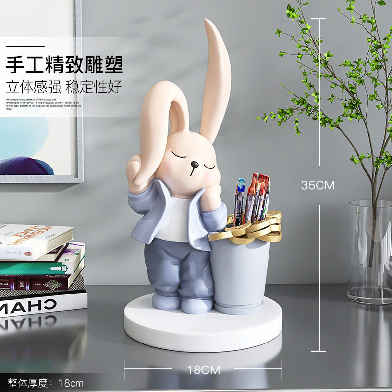 治愈系兔子笔筒摆件家居饰品化妆刷口红收纳盒客厅儿童房桌面装饰