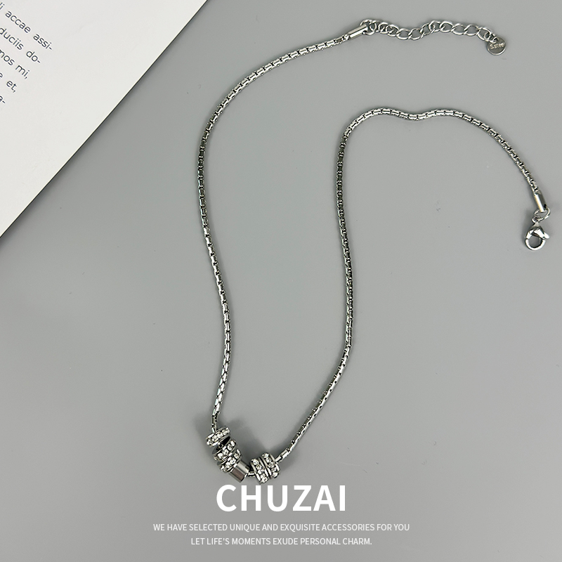 CHUZAI闪钻圆环项链男款洗澡可戴不掉色女生冷淡风小众情侣锁骨链