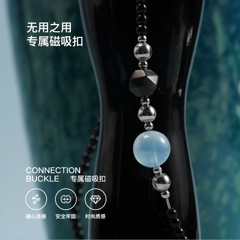 无用之用「肖宇梁同款」天然黑玛瑙海蓝宝银曜石项链原创设计礼物