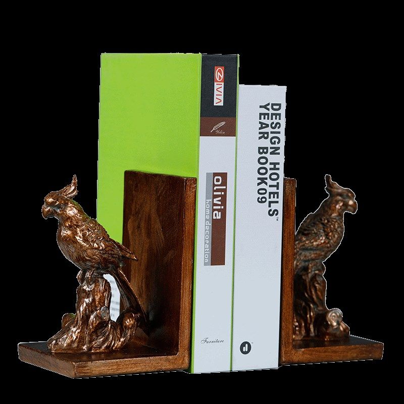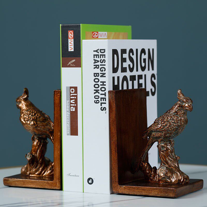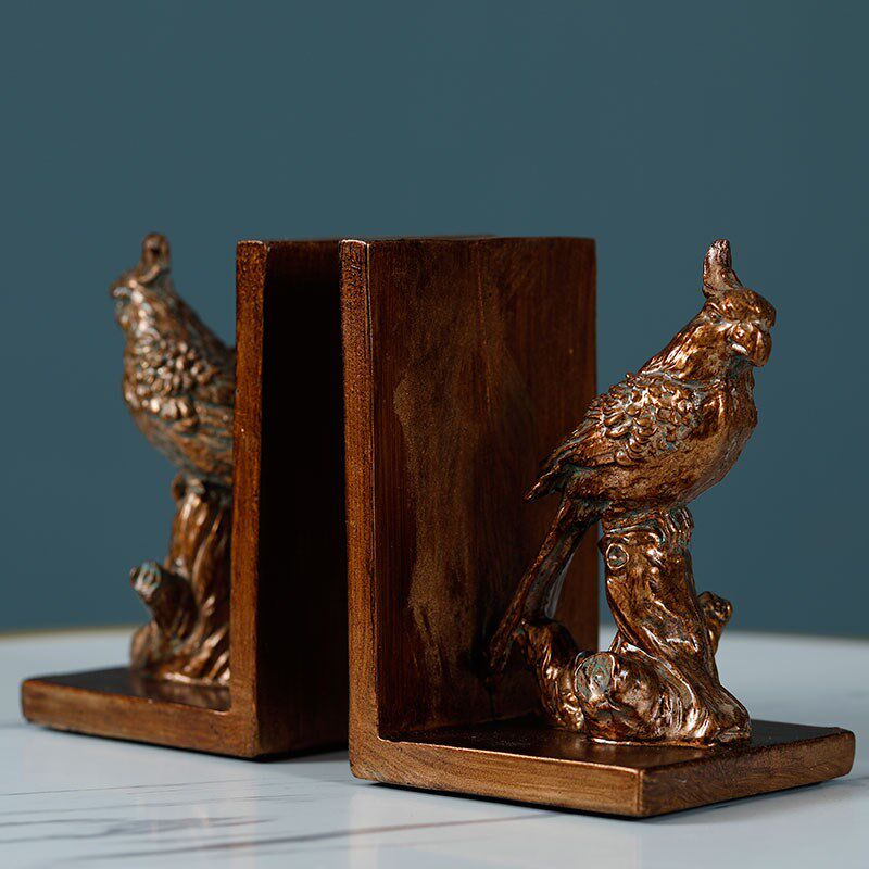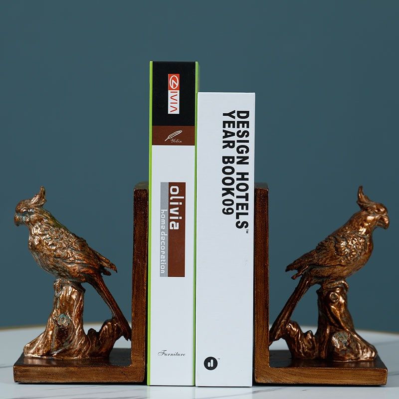 美式书房办公室创意装饰轻奢书挡艺术品鹦鹉书靠书柜柜子书档摆件