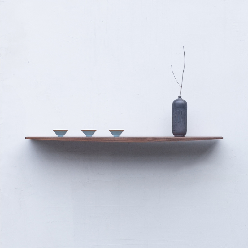 黑胡桃实木一字搁板禅意新中式置物架层板陈列架简约墙上装饰隔板