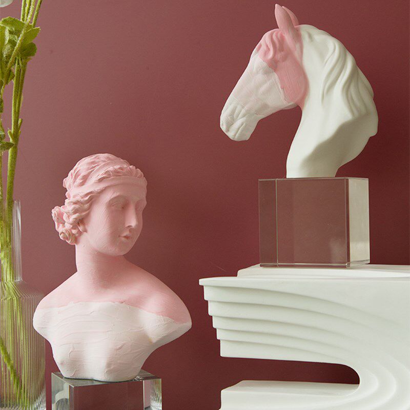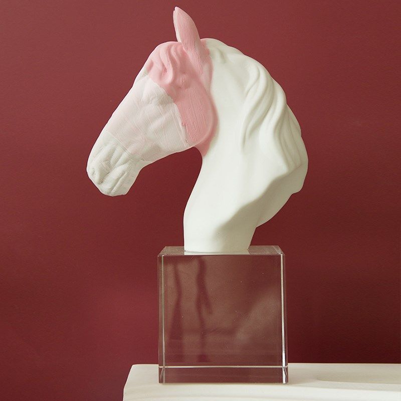 渐变粉淡红色马头水晶摆件桌面艺术人物雕塑雕像橱窗高级感装饰品