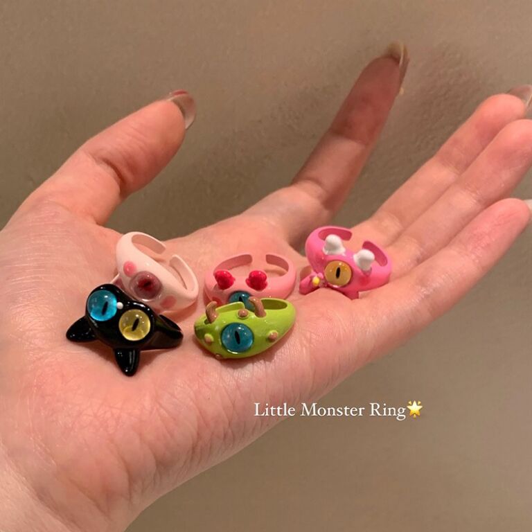 鬼马少女猫咪怪兽戒指女ins小众设计感时尚个性指环闺蜜情侣尾戒