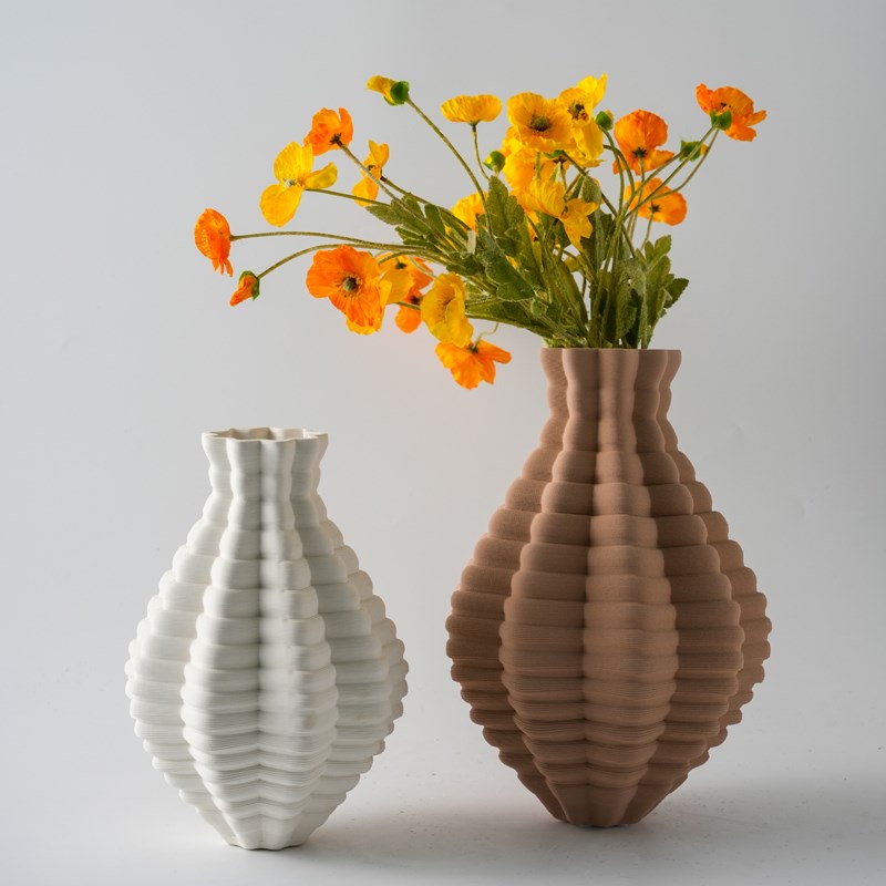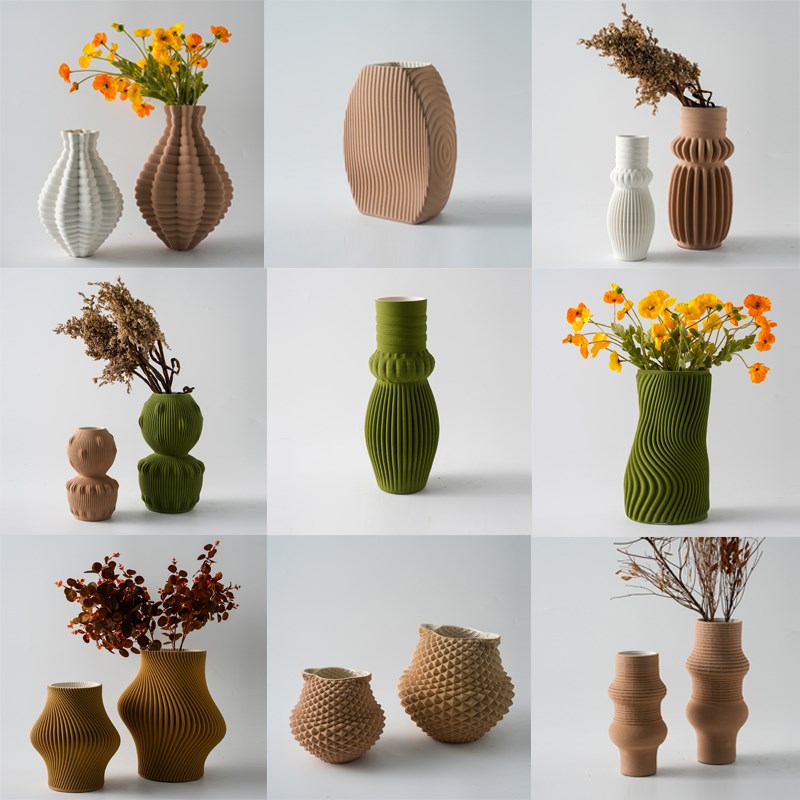 极简约3D打印白色绿色亚麻色陶瓷花瓶摆件样板间客厅花器装饰