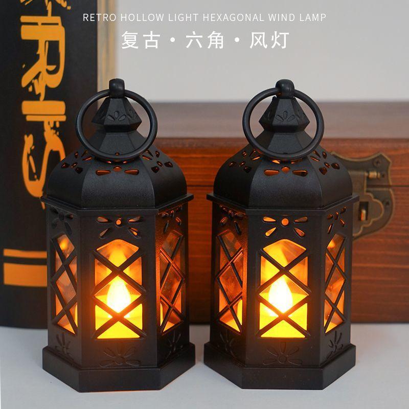 室内装饰氛围温馨发光小挂件复古镂空风灯LED卧室床头灯桌面挂灯
