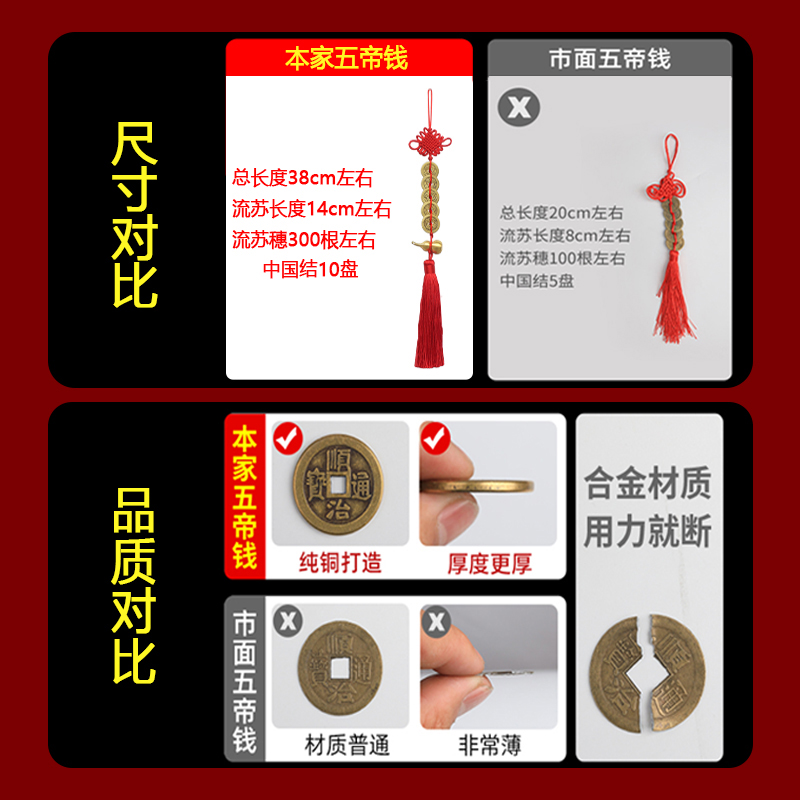 纯铜真品五帝钱门对门中国吉祥结铜葫芦挂件压门槛铜钱加厚古币