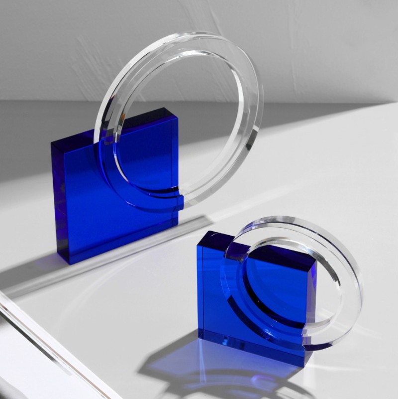 创意圆环门型书挡克莱因蓝色水晶样板房现代书挡书房桌面几何摆件