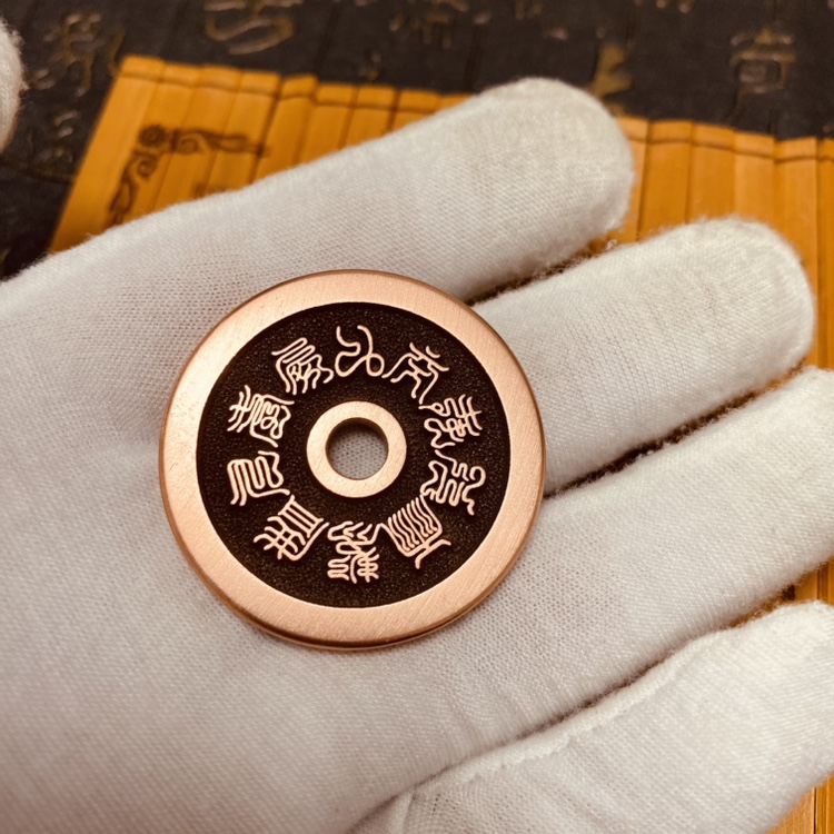 紫铜加厚道家五岳真形图铜钱吊坠道家符手把挂件平安十字天经花钱