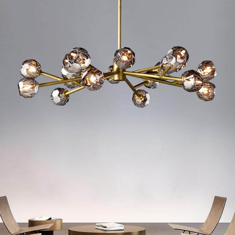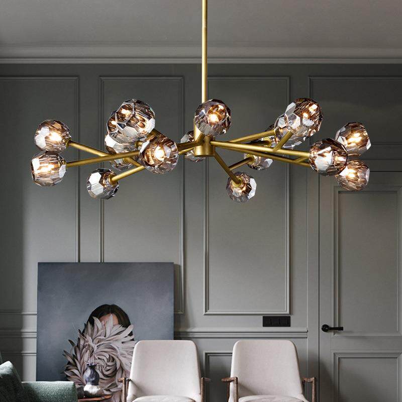 昊爽灯饰rh灯具轻奢吊灯客厅餐厅卧室全铜烟灰色水晶分子灯创意