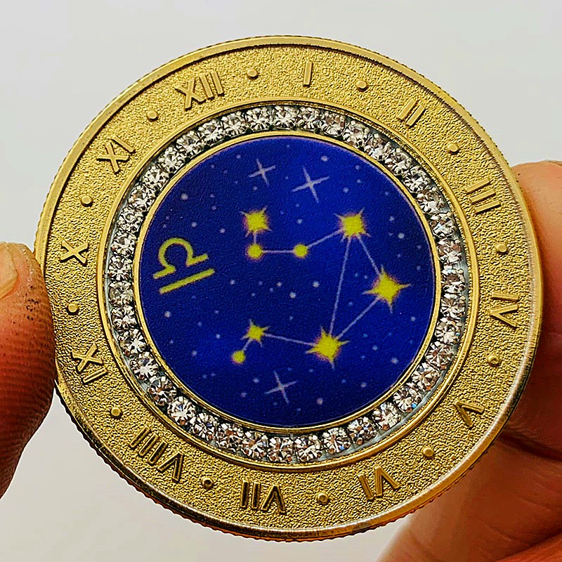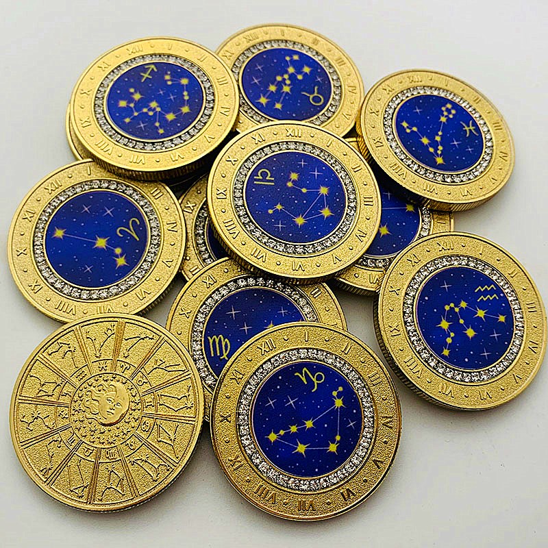 十二星座镶钻镀金纪念章 创意礼物男女通用指尖把玩35mm金币硬币