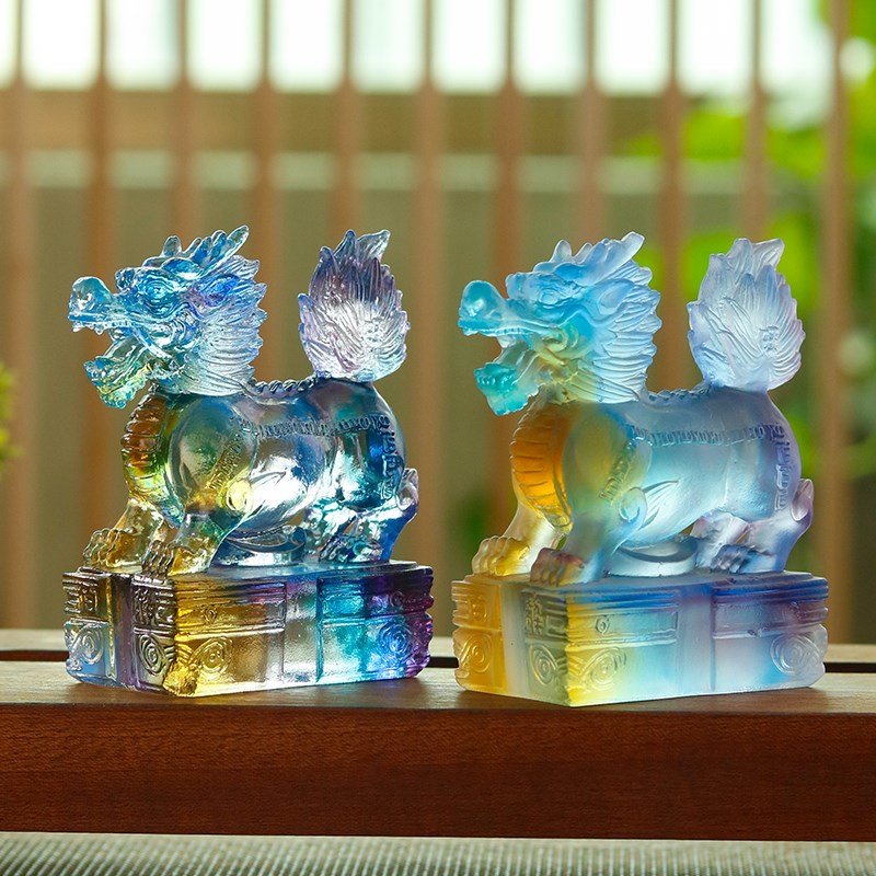 极速琉璃百解麒麟居家q办公桌面祥瑞摆件精美细致送人礼品礼物麒