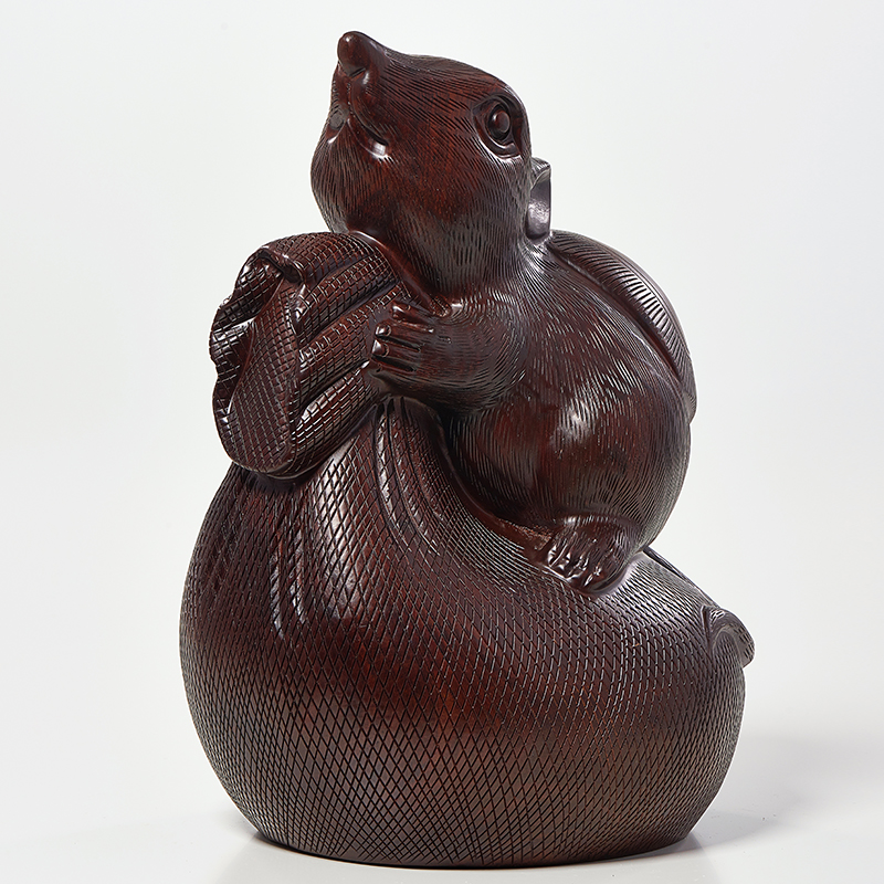 黑檀木雕老鼠摆件实木家居装饰生肖鼠摆设布袋鼠钱袋鼠红木工艺品