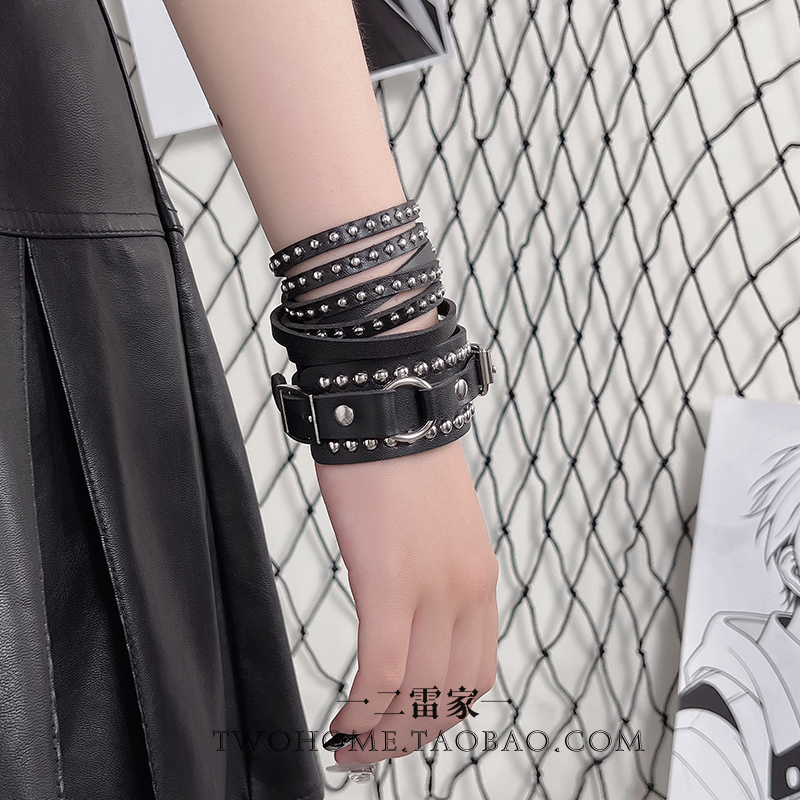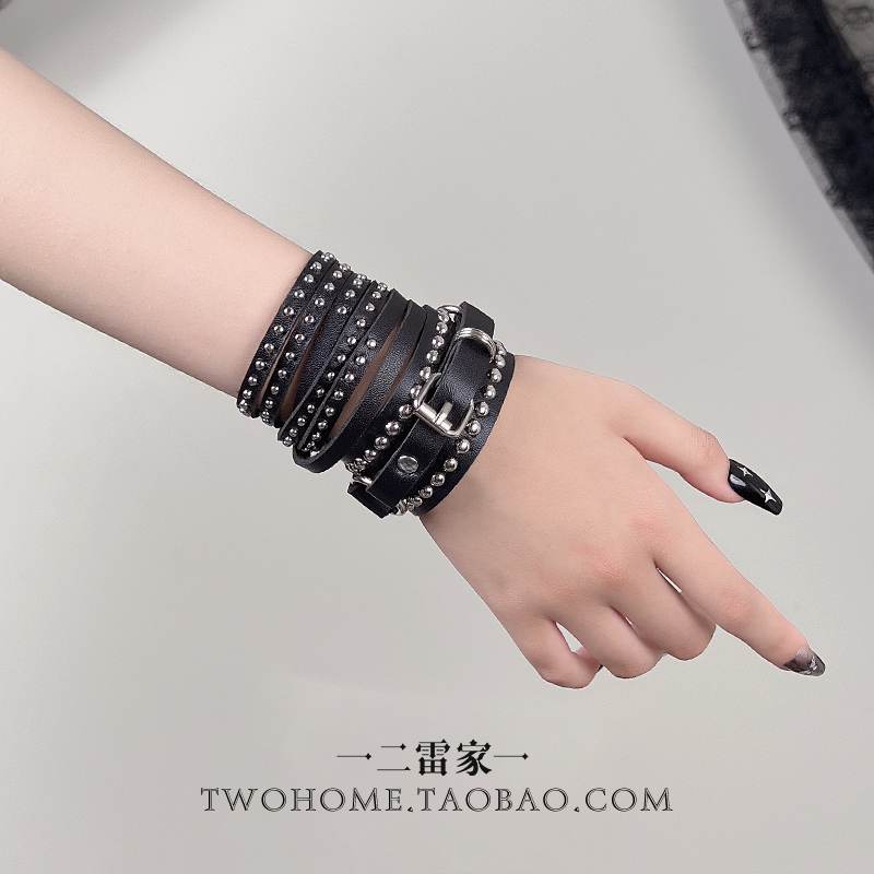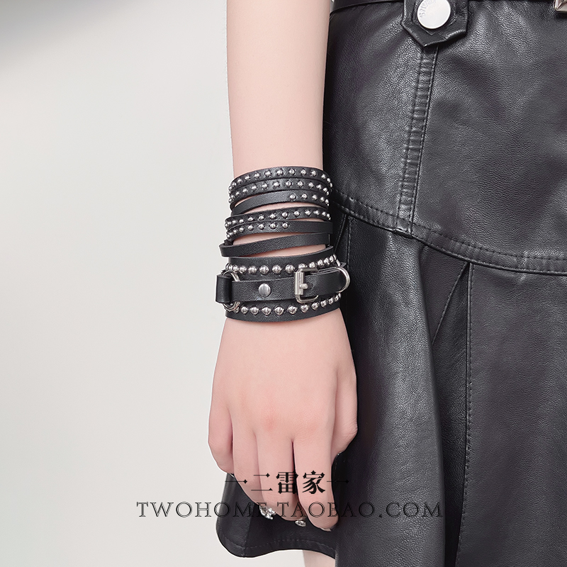朋克多层叠戴手链亚比风皮革铆钉缠绕腕带辣妹穿搭皮带手环配饰品