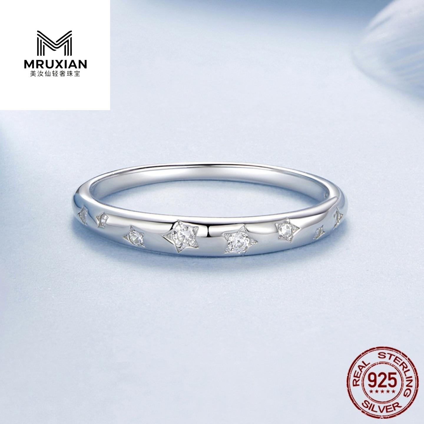 MRUXIAN 简约百搭繁星戒指纯银镀白金星空指环女轻奢高级感原创设