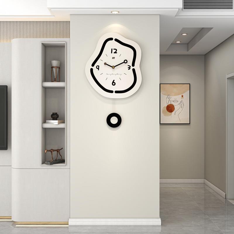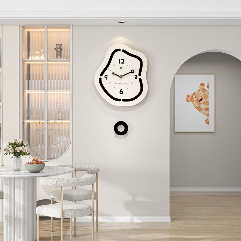 奶油风创意挂钟客厅高级感时尚简约大气钟表家用餐厅装饰挂墙时钟